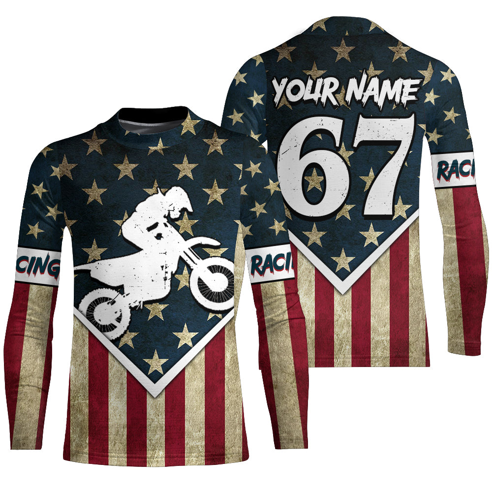 Kid&Adult American Flag Motocross Jersey Personalized UPF30+ Dirt Bike Shirt Off-Road MX Racing PDT748