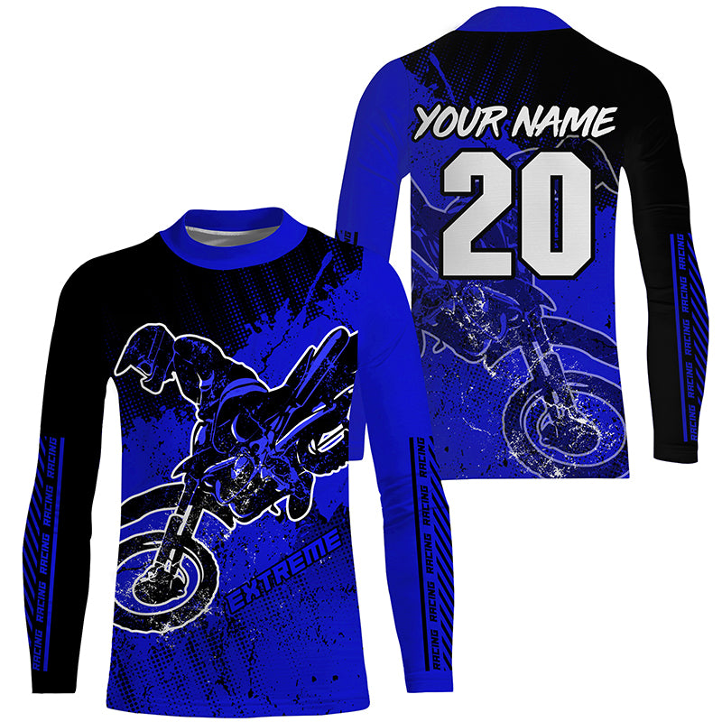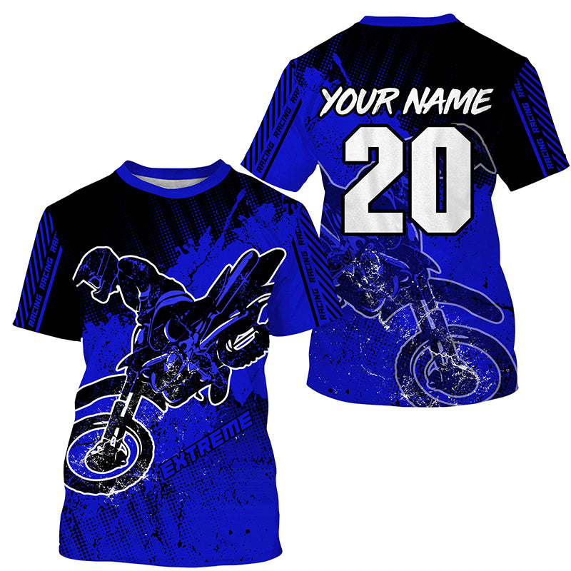 Motocross for kid men women jersey custom UPF30+ off-road dirt bike blue racing shirt motorcycle PDT321