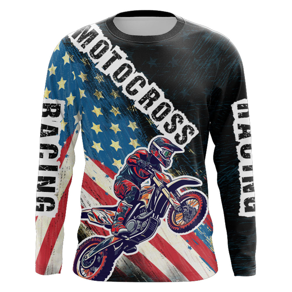 Motocross Jersey UPF30+ American Flag Dirt Bike Racing Shirt Off-Road Rider Racewear Long Sleeves XM70