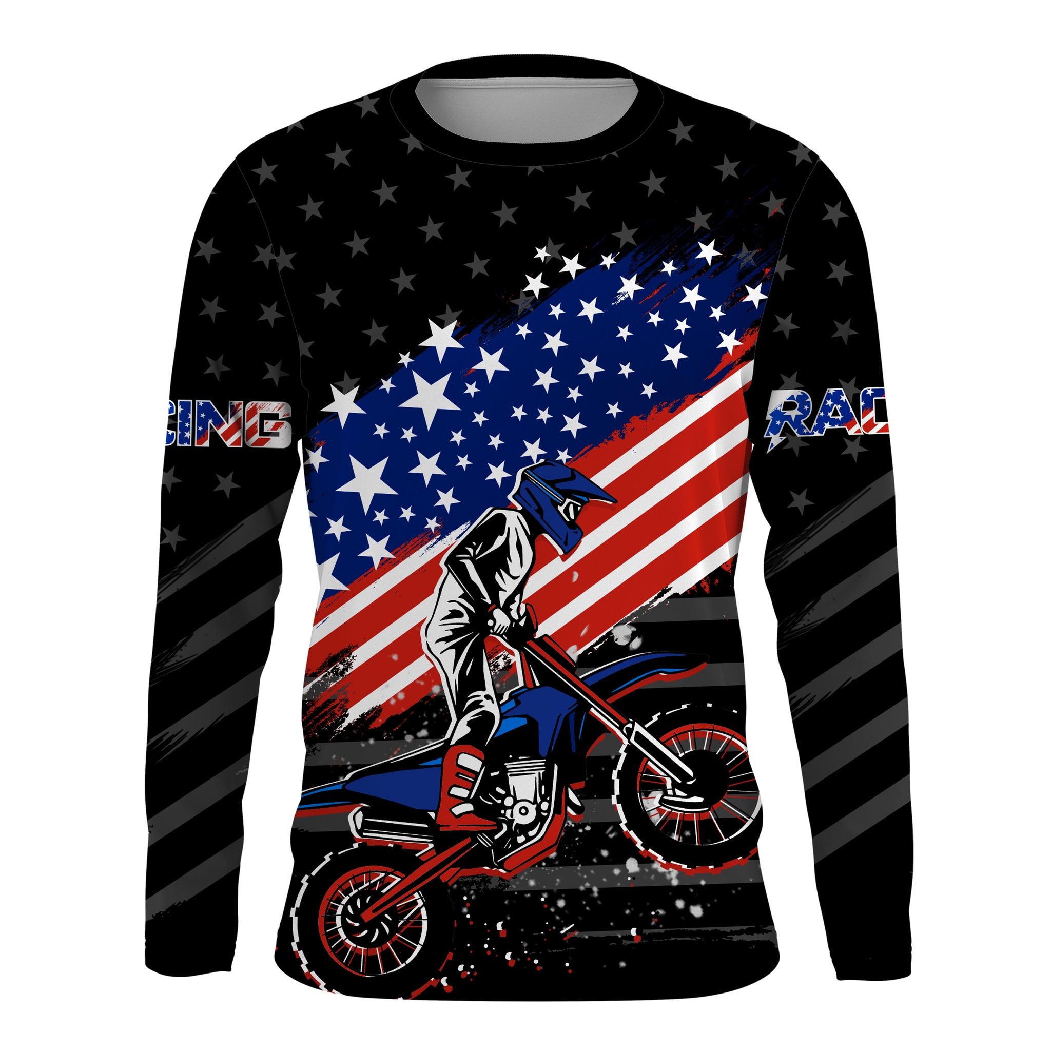 Motocross Jersey UPF30+ American Flag Dirt Bike Racing Shirt Youth Off-Road Jersey Kid Men XM114