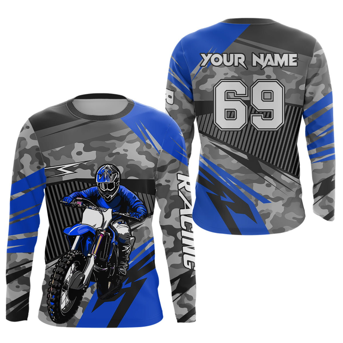 Motocross Racing Jersey Blue Upf30+ Dirt Bike Off-Road Shirt Motorcycle Kid Men Women XM282