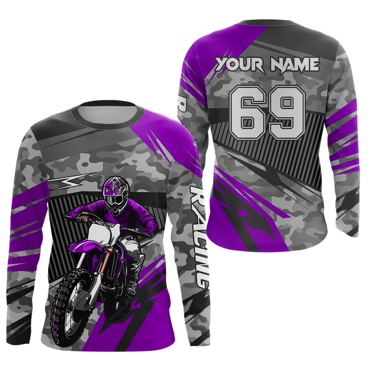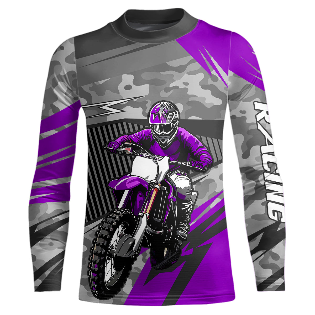 Motocross Racing Jersey Purple Upf30+ Dirt Bike Off-Road Shirt Motorcycle Kid Men Women XM282