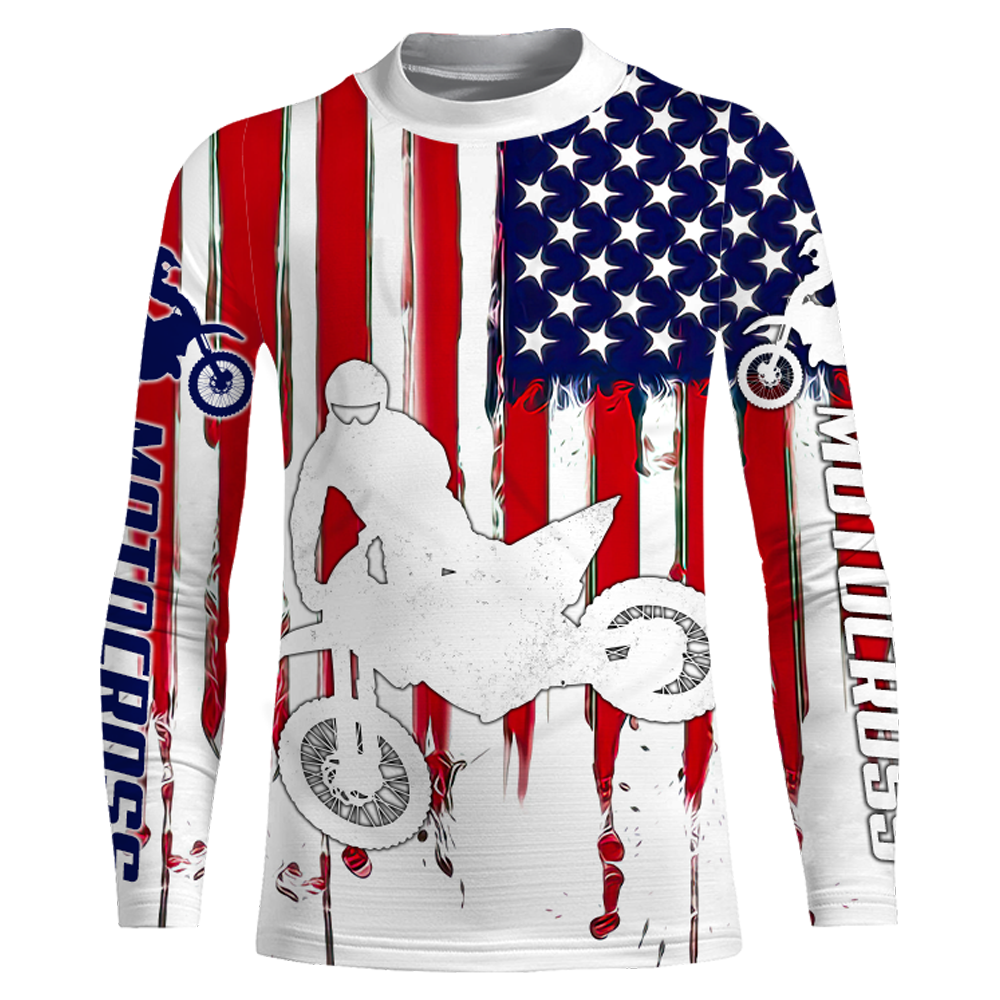 Motocross Racing Jersey UPF30+ American Flag Dirt BIkeJersey Youth MX Riding Motorcycle Shirt XM111