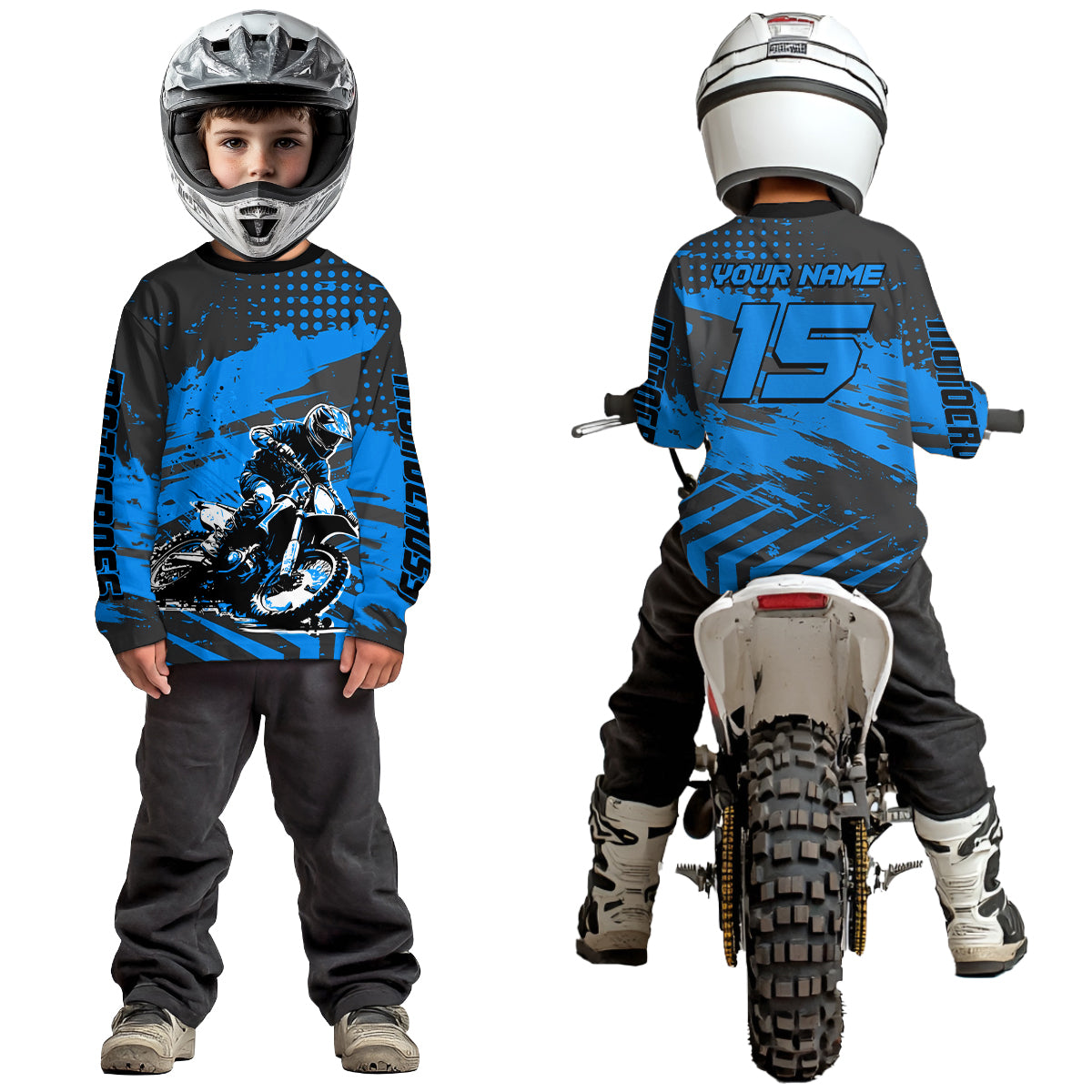 Personalized Blue Motocross Shirts Off-Road Dirt Bike Shirt Kid Men Women UPF30+ DNT16
