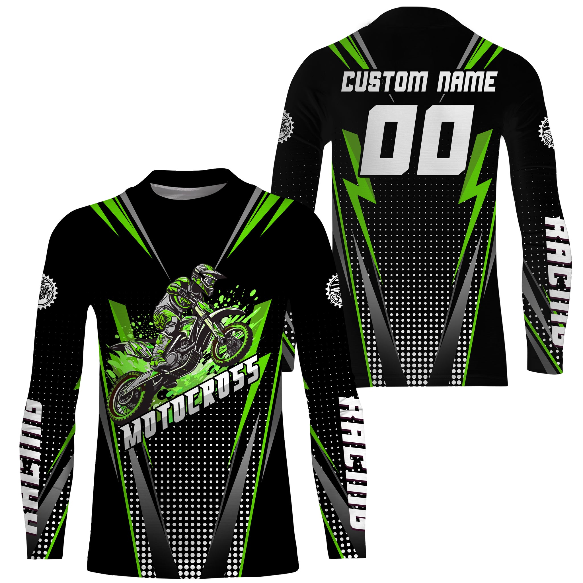 Personalized Green Motocross Jersey Kid&Adult Upf30+ Dirt Bike Shirt Off-Road Motorcycle Racing PDT671