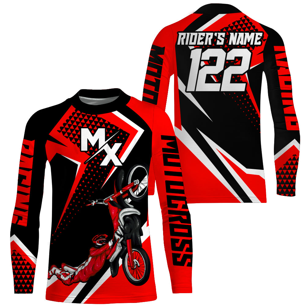 Personalized MX Jersey Kid Men Women UPF30+ Dirt Bike Shirt Freestyle Red Motocross Off-Road PDT610