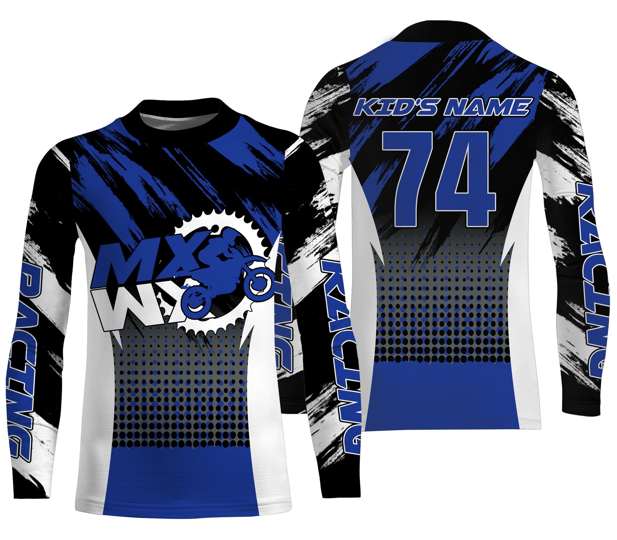 Personalized MX Jersey Men Kid Women UPF30+ Blue Dirt Bike Off-Road Jersey Motocross Racing Shirt PDT655
