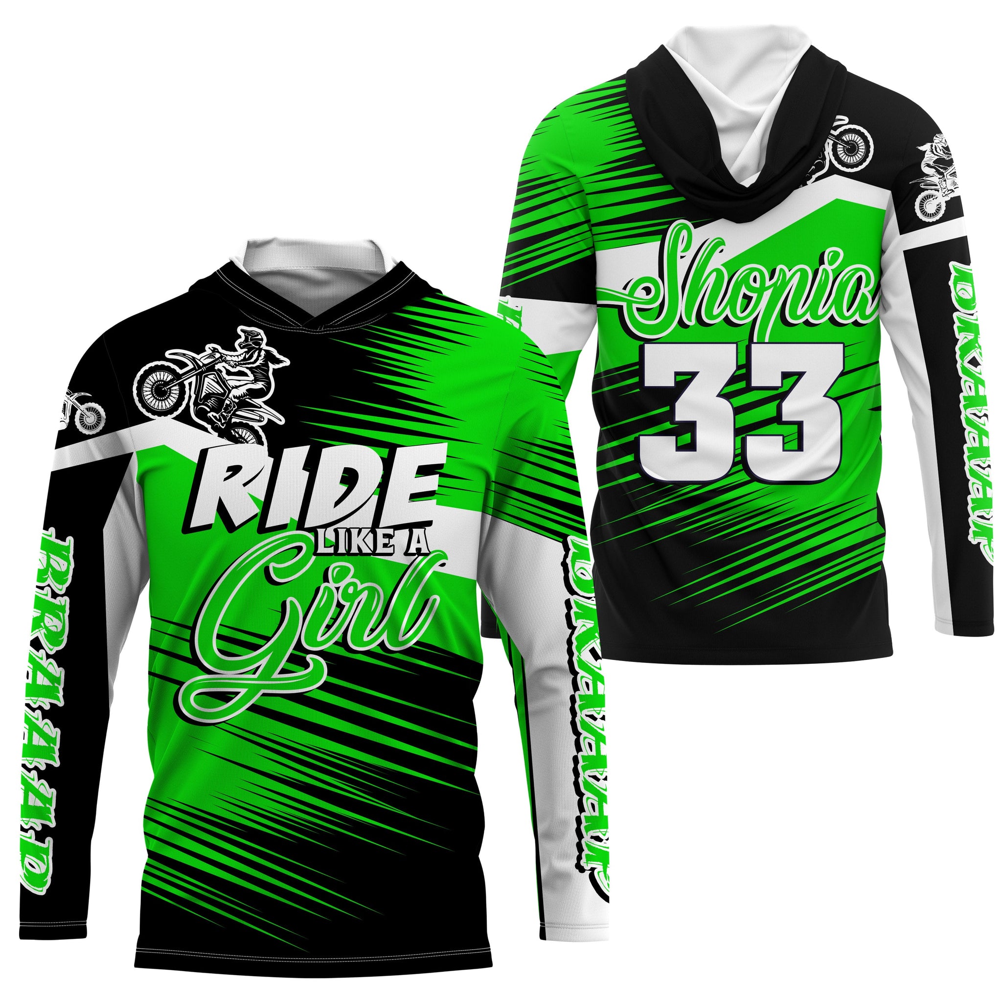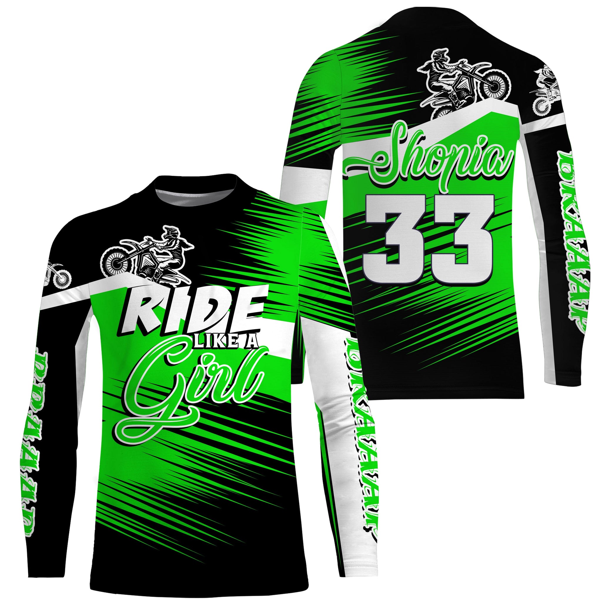 Ride Like A Girl Motocross Jersey Personalized UPF30+ Green Dirt Bike Riding Shirt Women Girls NMS737