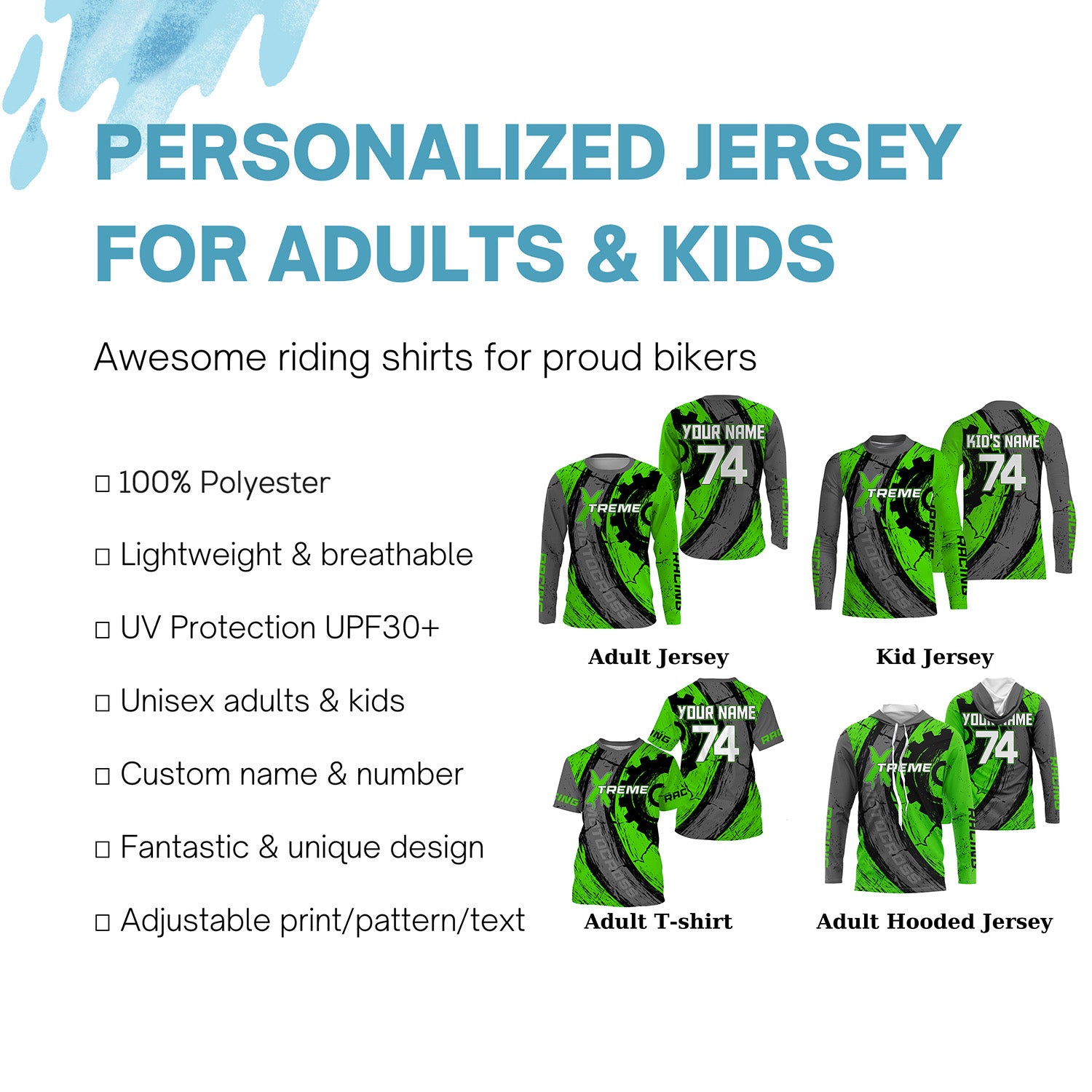 - PERSONALIZED RIDING JERSEY: This super cool shirt is exactly what all bikers are looking for. Add your name/number to make it a unique one that bears your own imprints.