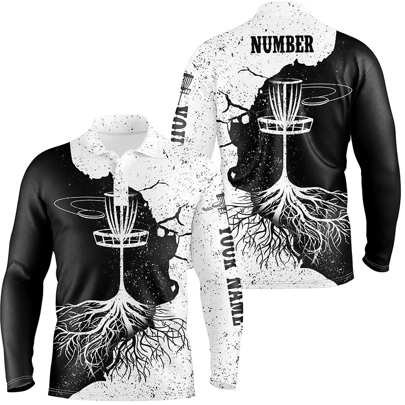 Mens Disc Golf Polo Shirt Custom Black & White Disc Golf Shirts For Men Disc Golf Gifts LDT0731