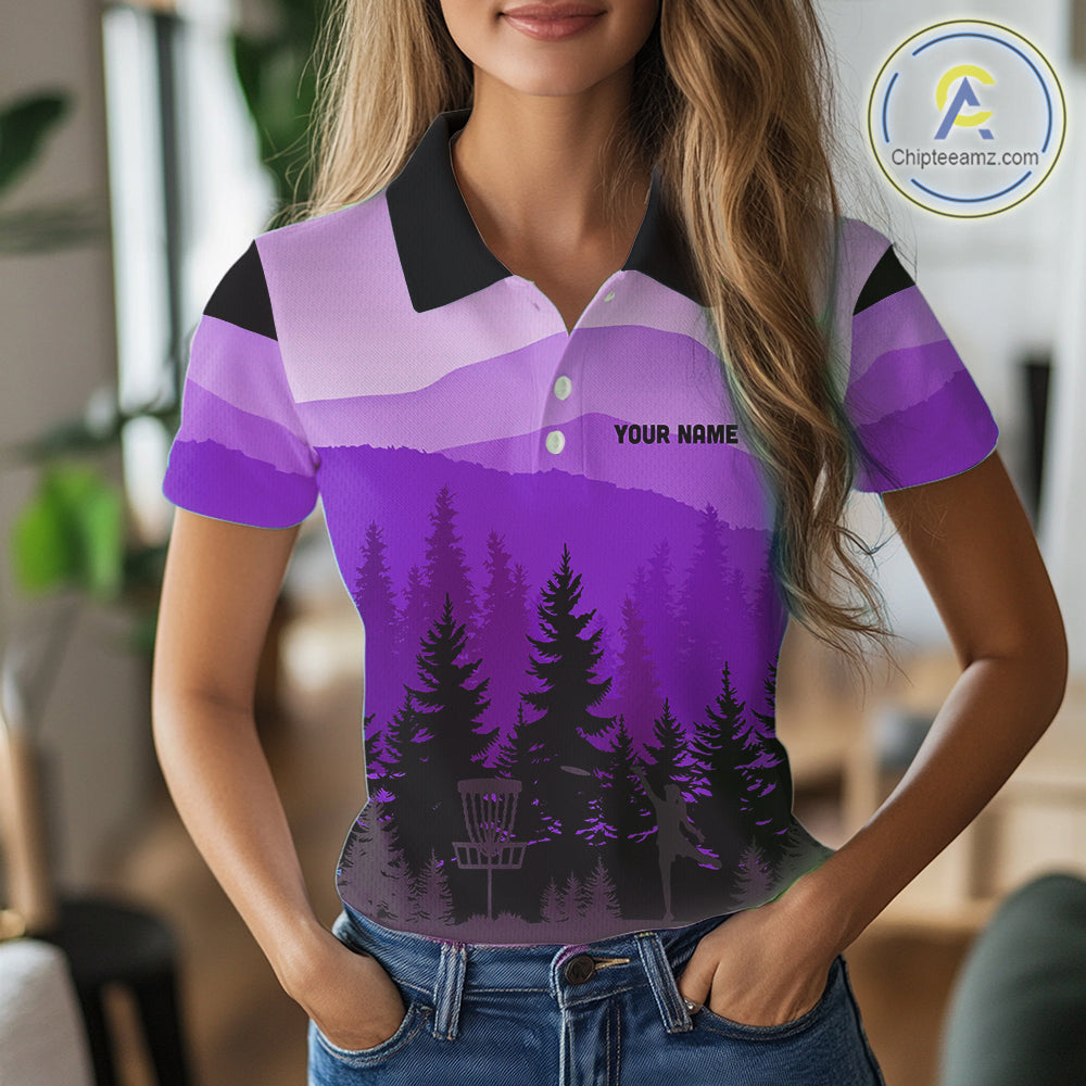 Purple pattern forest Women Disc golf polo shirts Custom team disc golf jerseys for ladies NQS10028