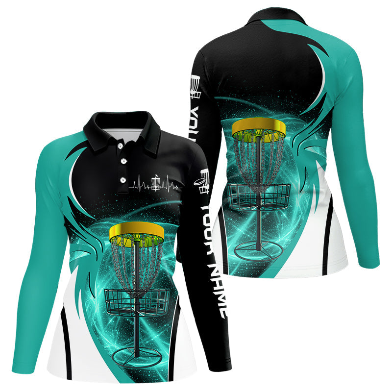 Womens disc golf polo shirt custom disc golf basket, personalized disc golf gifts | Cyan Blue NQS9092