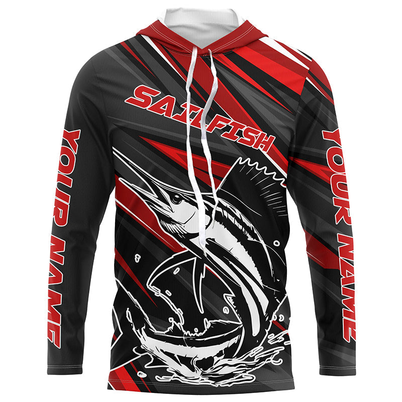 Black And Red Sailfish Fishing Jerseys, Custom Sailfish Long Sleeve Performance Fishing Shirts IPHW6899