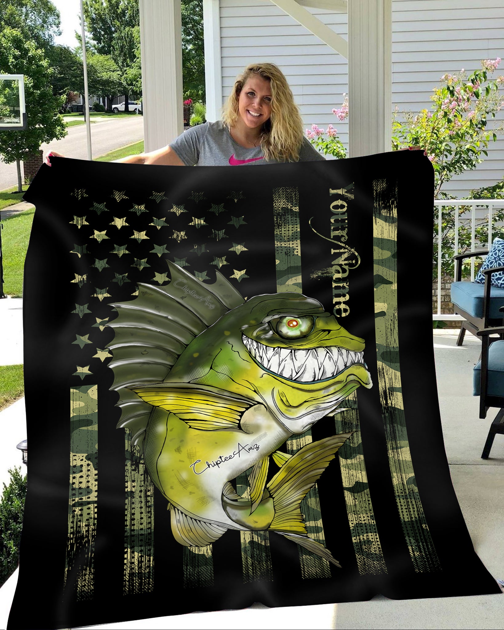 Largemouth Bass fishing American flag camo black funny bass fish ChipteeAmz's art custom fleece blanket AT049