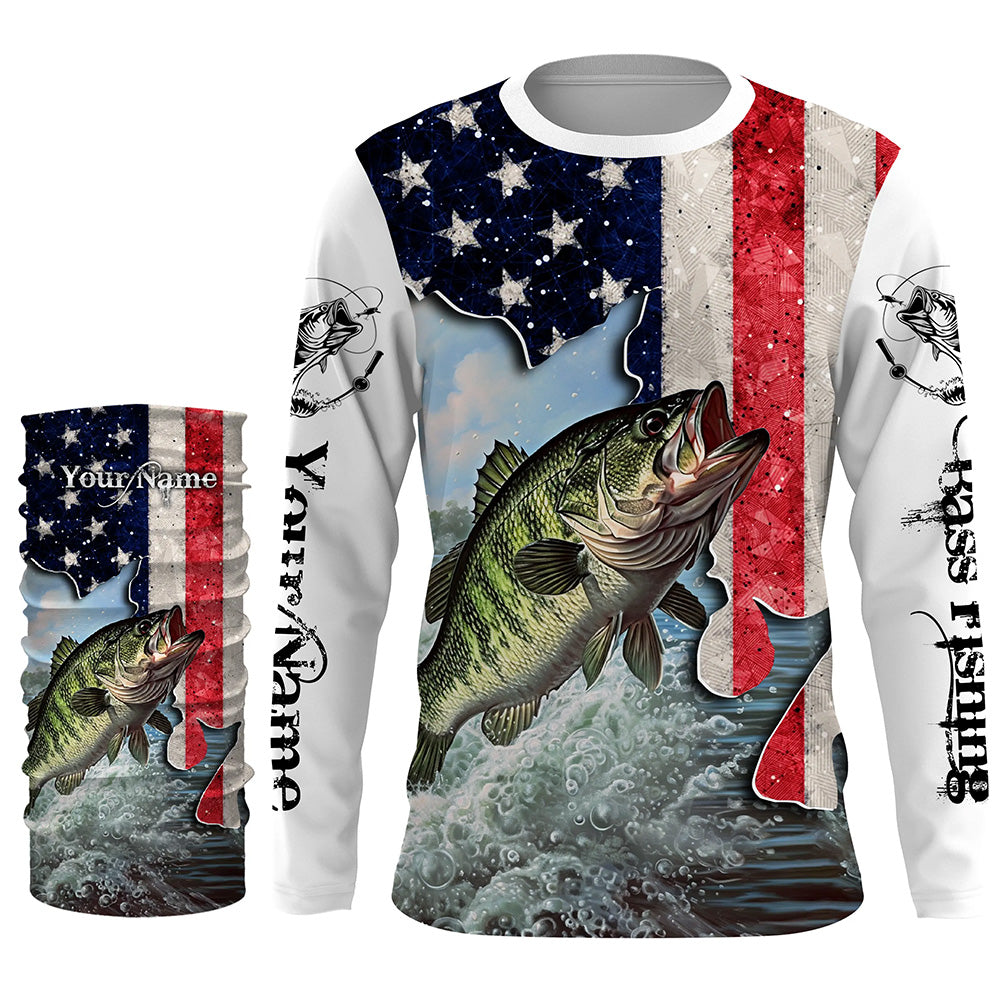 American Bass fishing US flag UV protection Custom long sleeves fishing shirt NQS2715
