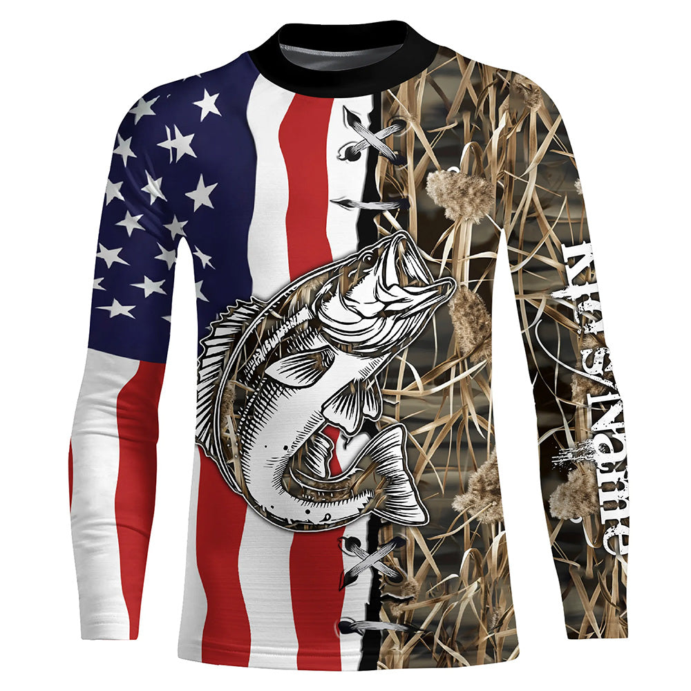 Bass Fishing American Flag Camo Custom Name 3D All over printed UV protection Shirts Fishing gift TTN09