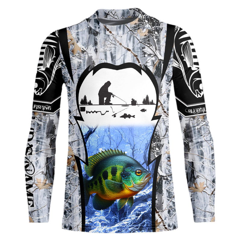 Bluegill ice fishing Winter camo custom unisex Long sleeve fishing shirt, Ice fishing Bluegill jersey NQS9193