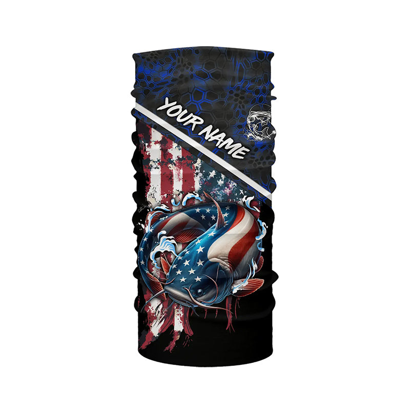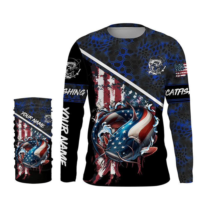 American Flag catfish fishing blue camo Custom Name Fishing Shirts UV Protection NQS3642