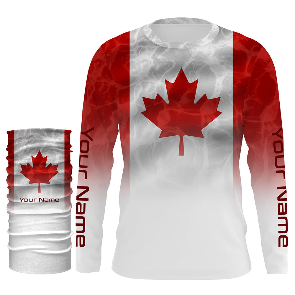 Canadian Flag Performance Shirts, Custom Name Canada Fishing water wave UV Protection shirts for Fisherman FSD4145