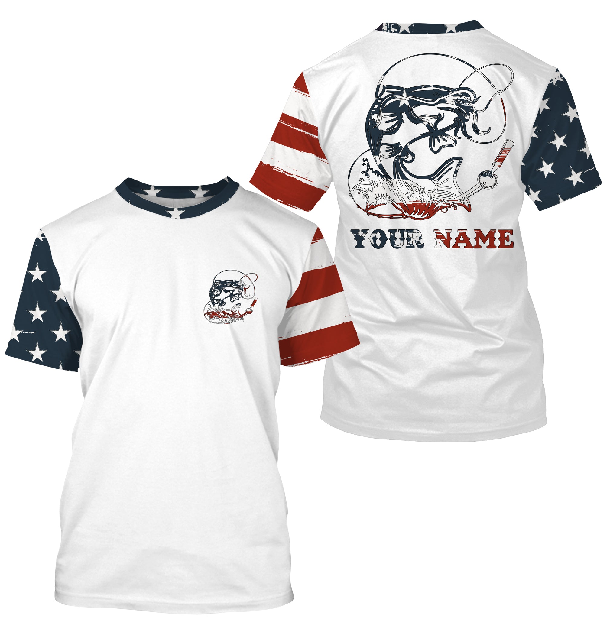 Catfish Fishing catfish hunter American Flag Customized Name UV Protection Shirts, patriotic Fishing Clothing NQS2384