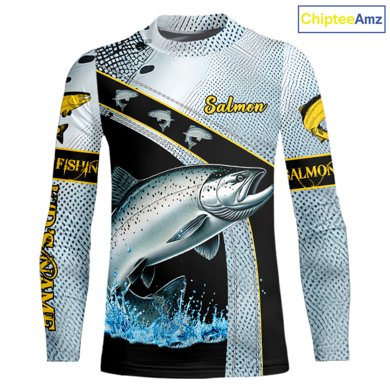 Chinook Salmon fishing scales UV protection Custom long sleeve fishing shirts, Salmon fishing jerseys NQS10216