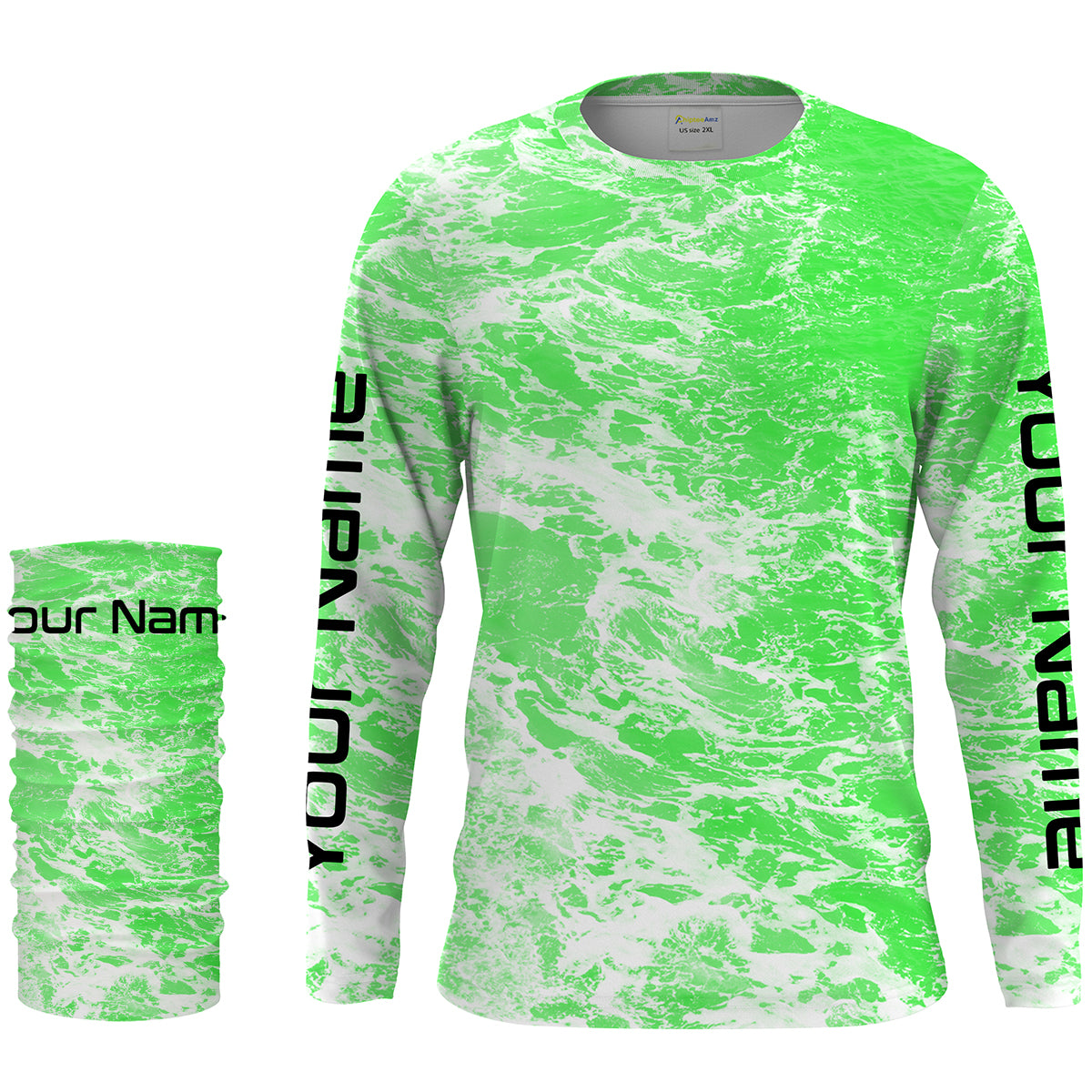 Custom Saltwater Long sleeve Fishing Shirts UV Protection, Sea wave camo Fishing Shirts | green - IPHW1502