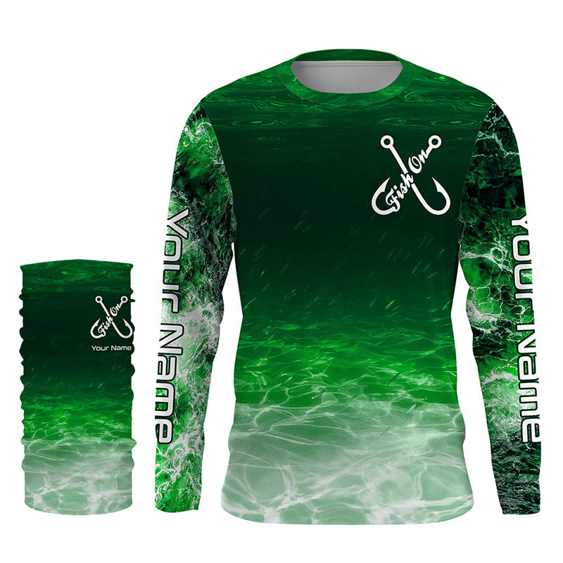 Fish on green sea water camo Custom Name performance long sleeve fishing shirts uv protection NQS7039