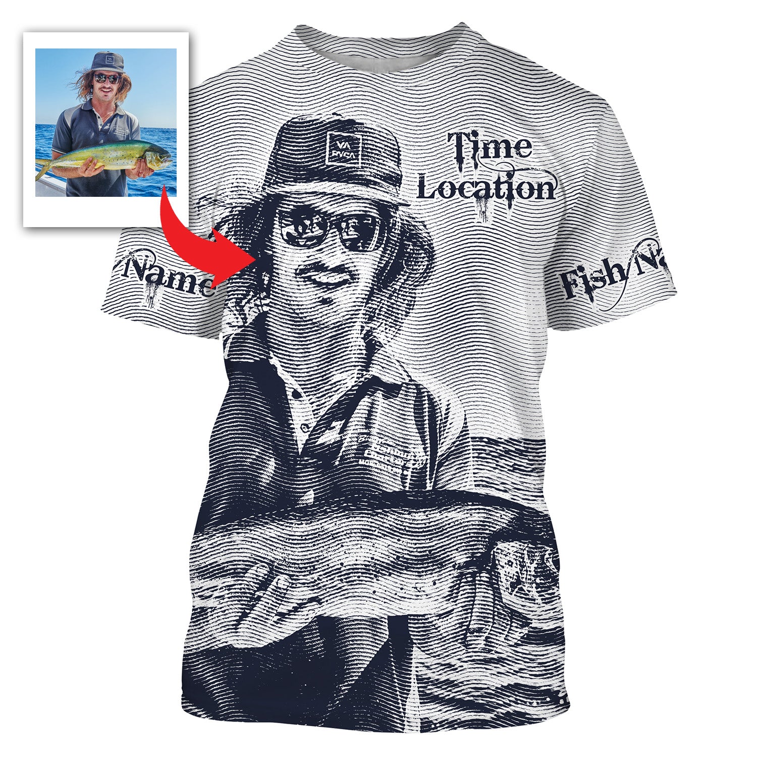 Fishing Shirt Custom Name, Image, Time, Location 3D UV protection Shirts UPF 30+ Fishing gift| Black - TMTS050