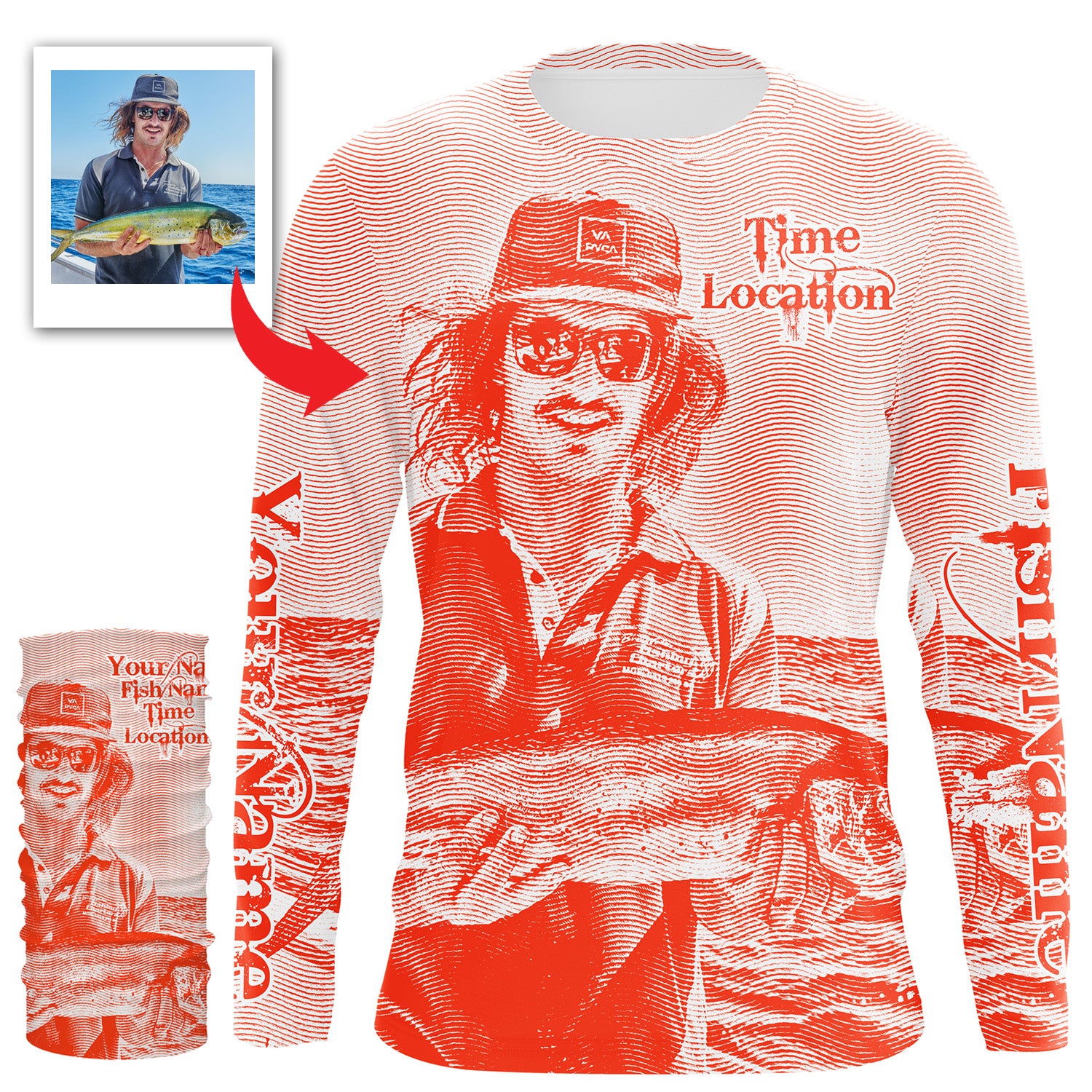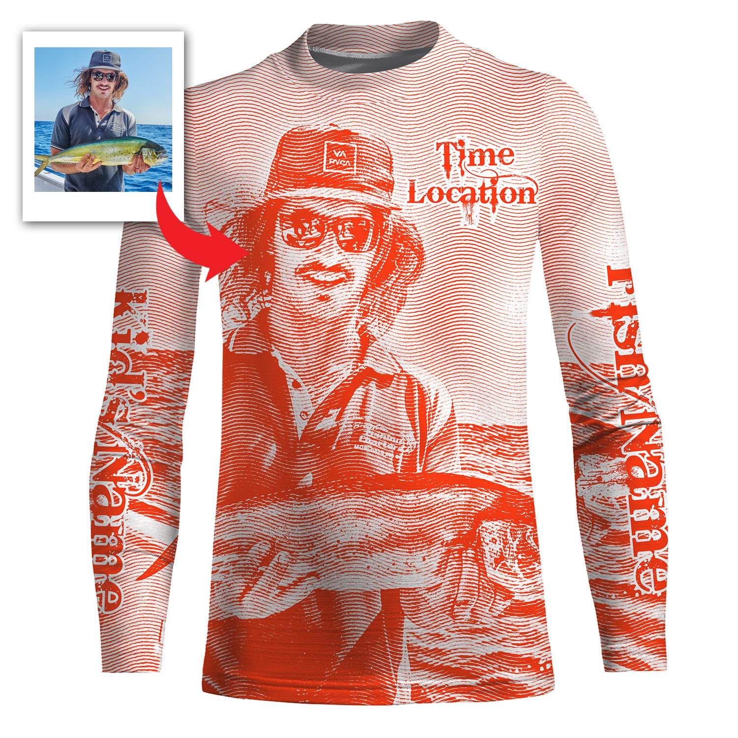 Fishing Shirt Custom Name, Image, Time, Location 3D UV protection Shirts UPF 30+ Fishing gift| Red - TMTS050