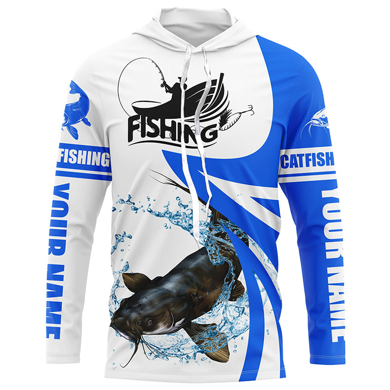 Flathead Catfish fishing Custom UV protection long sleeve fishing shirt, Catfish fishing jersey | Blue NQS5033