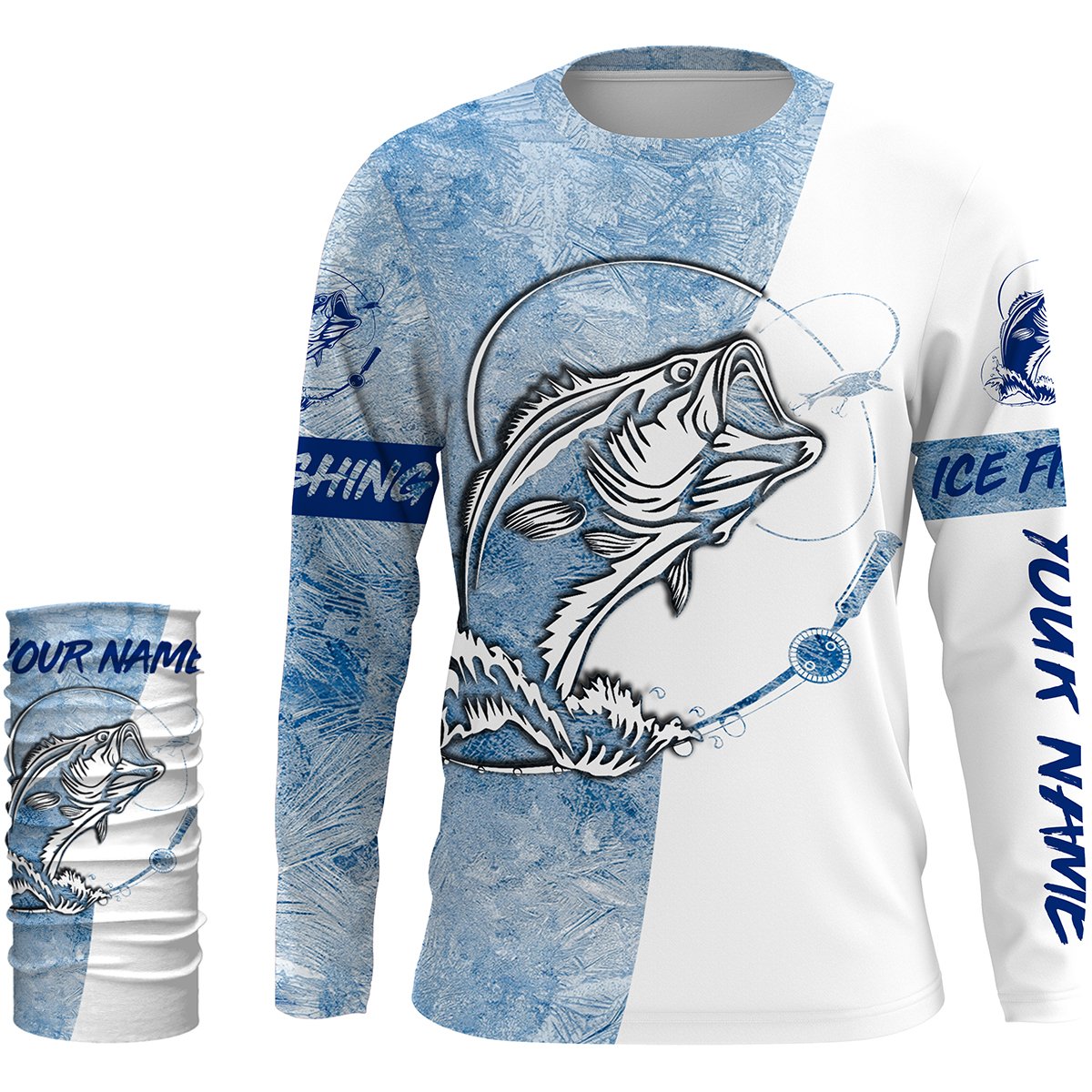 Ice Fishing Largemouth Bass Winter Fishing Performance Long Sleeve Shirts, Fisherman Gifts FSD2657