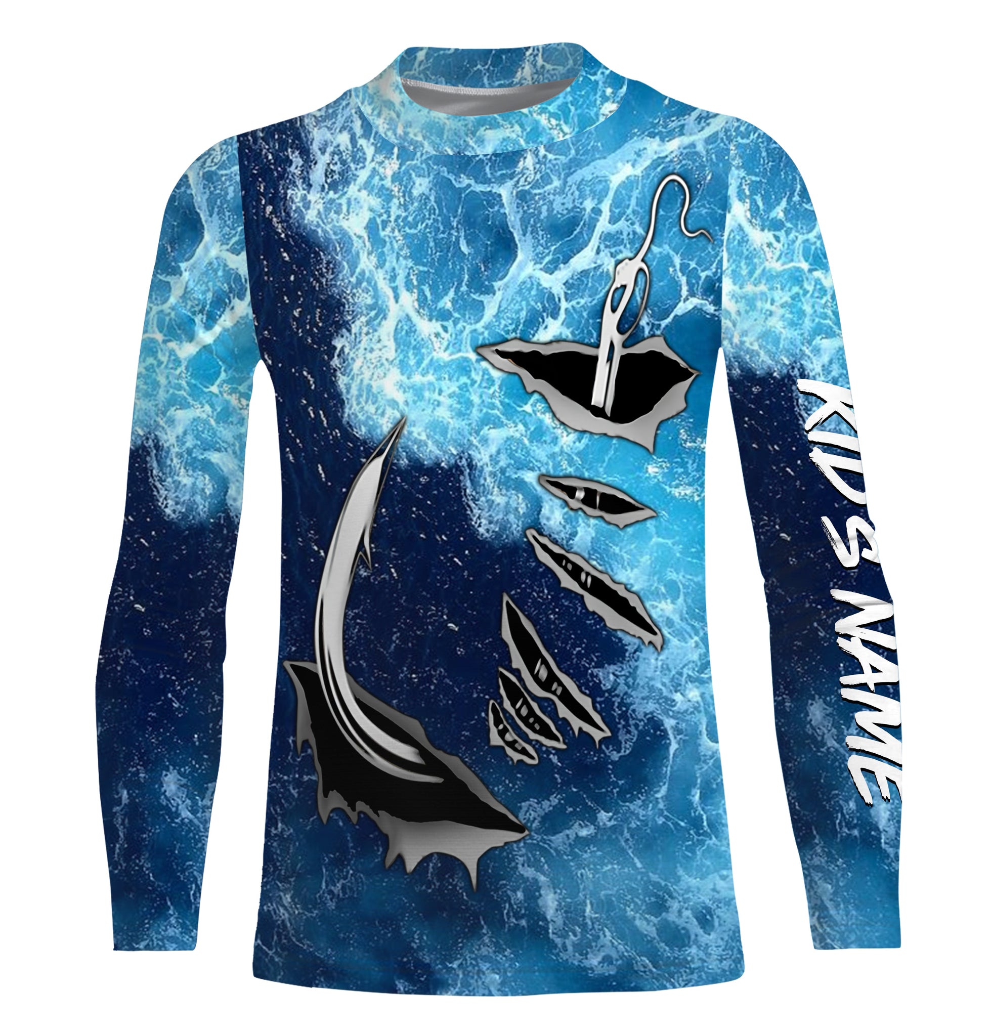 Fishing camo Fish hook Custom Long sleeve performance Fishing Shirts, sea waves camo Fishing jerseys IPHW2934