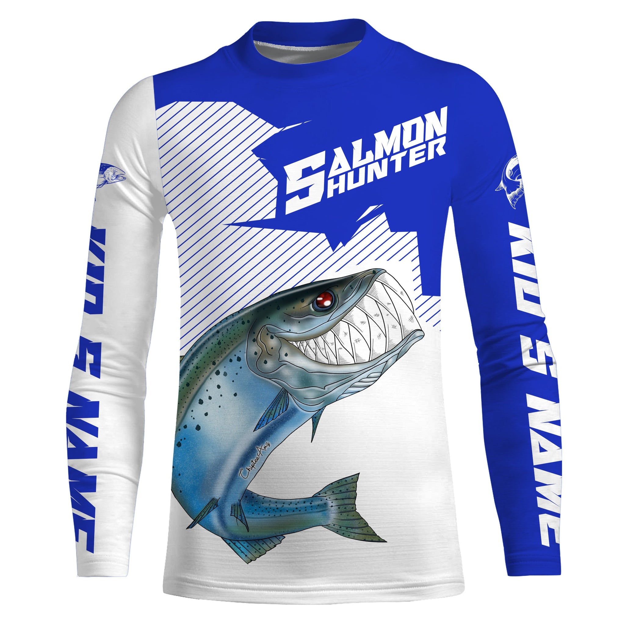 Angry Chinook King Salmon Custom Long sleeve Fishing Shirts, Salmon hunter Fishing jerseys | blue IPHW3352