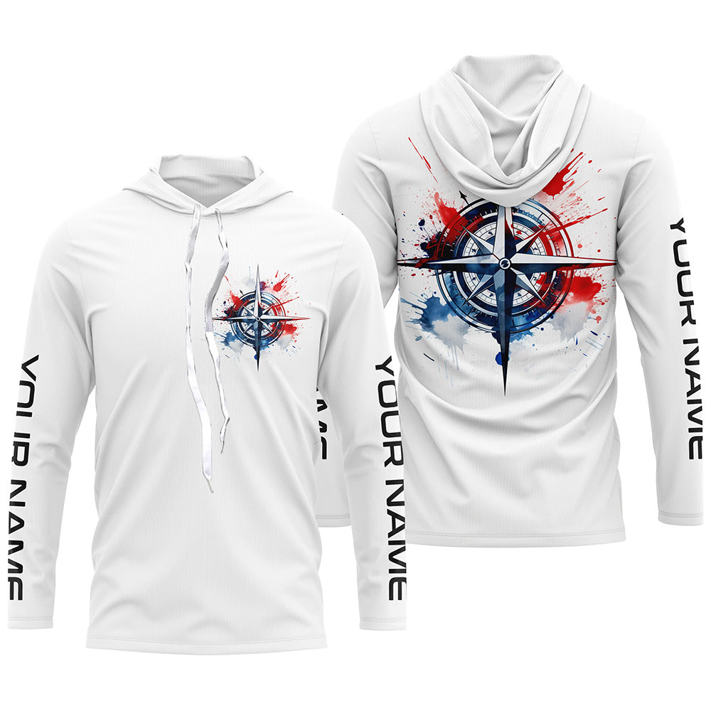 Red, White And Blue Compass Custom Performance Fishing Shirts, Patriotic Saltwater Fishing Shirts IPHW4948