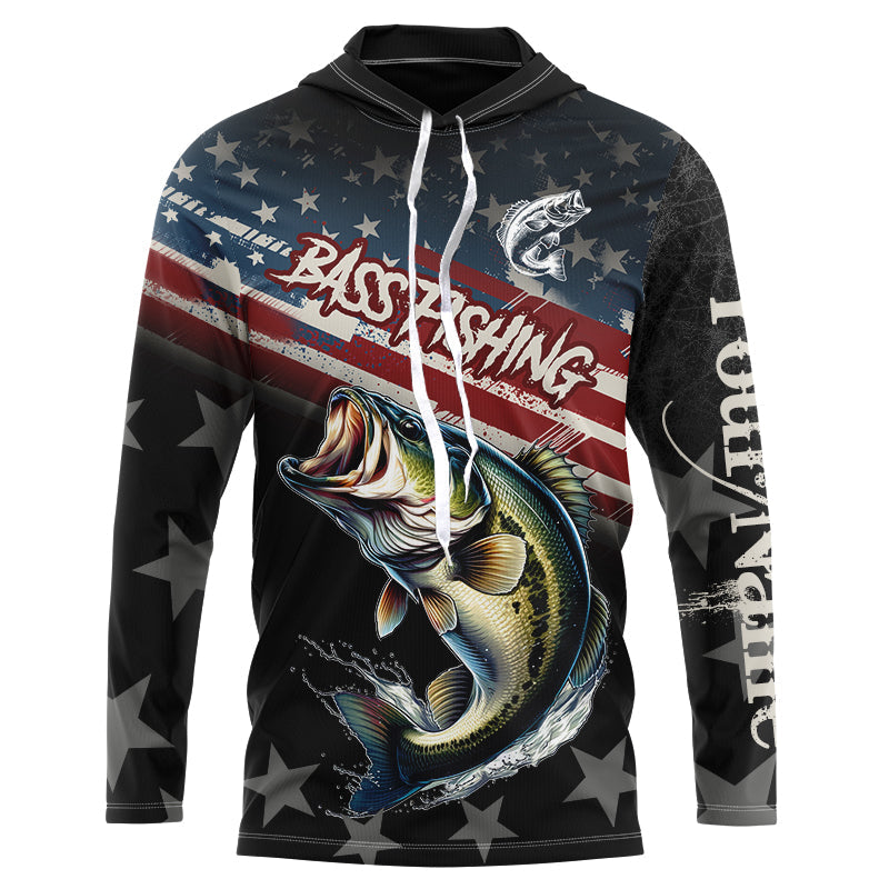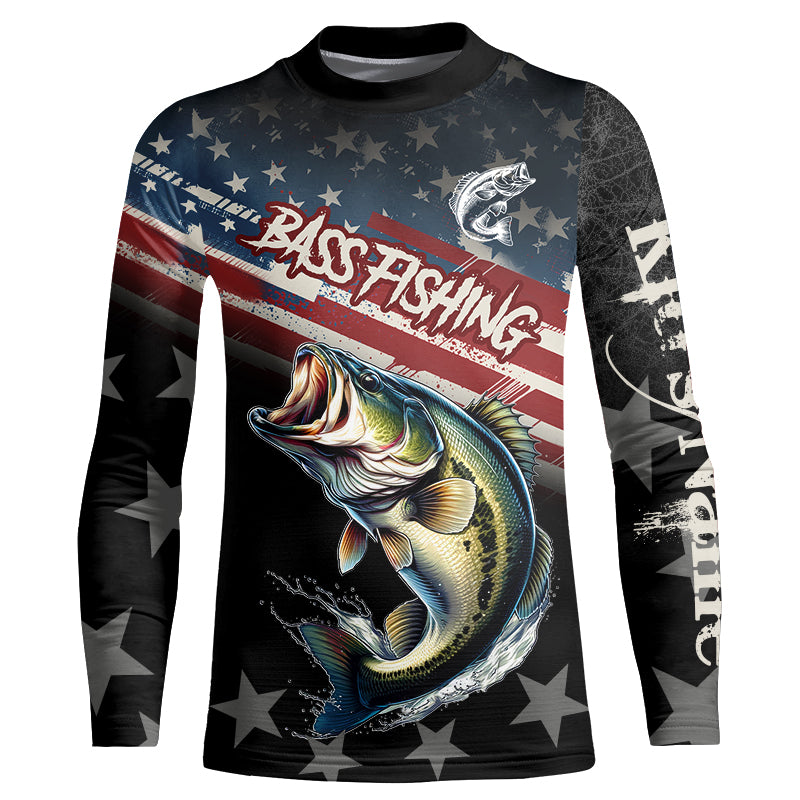 Largemouth Bass Fishing American Flag Custom black camo patriotic fishing long sleeve shirts NQS8736