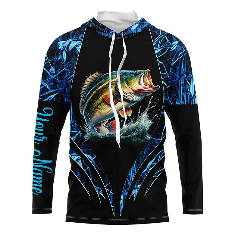 Largemouth bass fishing blue camo custom 3D All Over Printed Fishing Shirts, Bass fishing apparel NQS7898