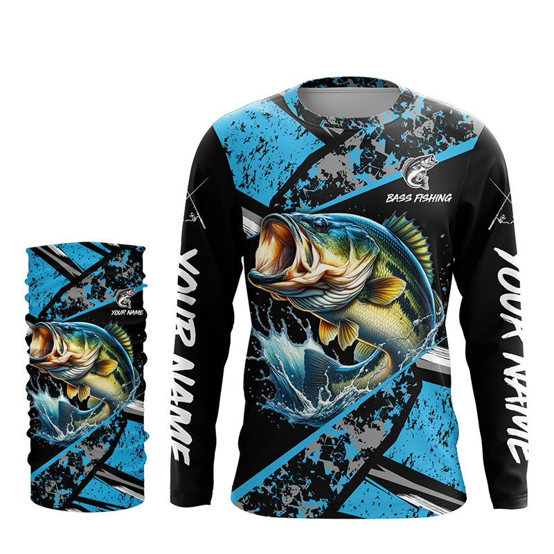 Largemouth Bass fishing Blue camo Long Sleeve Performance Fishing Shirt custom Bass fishing jerseys NQS7602