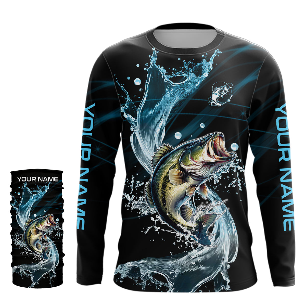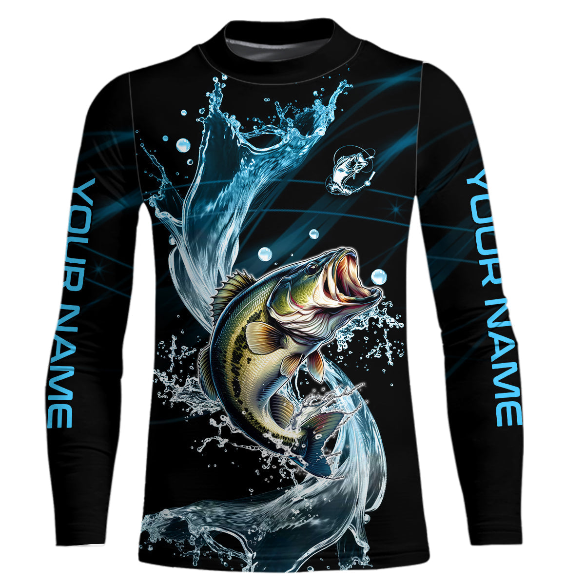 Largemouth Bass fishing blue water Custom performance long sleeve fishing shirts, Bass fishing jerseys NQS7411