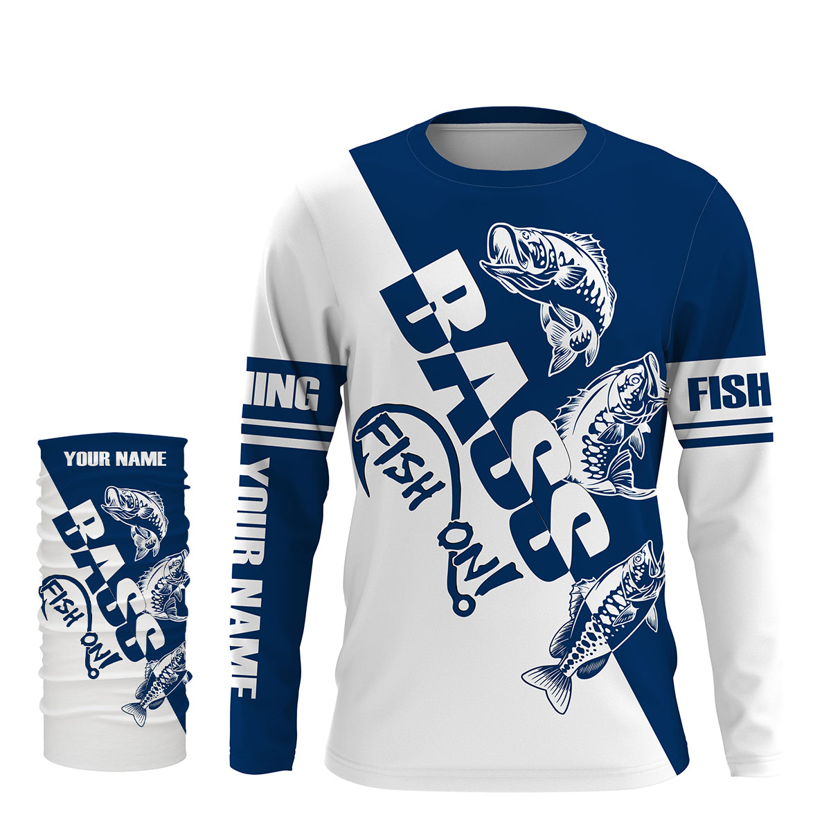 Largemouth Bass Fishing fish on blue and white Customized Name UV Protection UPF 30+ Shirts, Fishing Clothing NQS2401