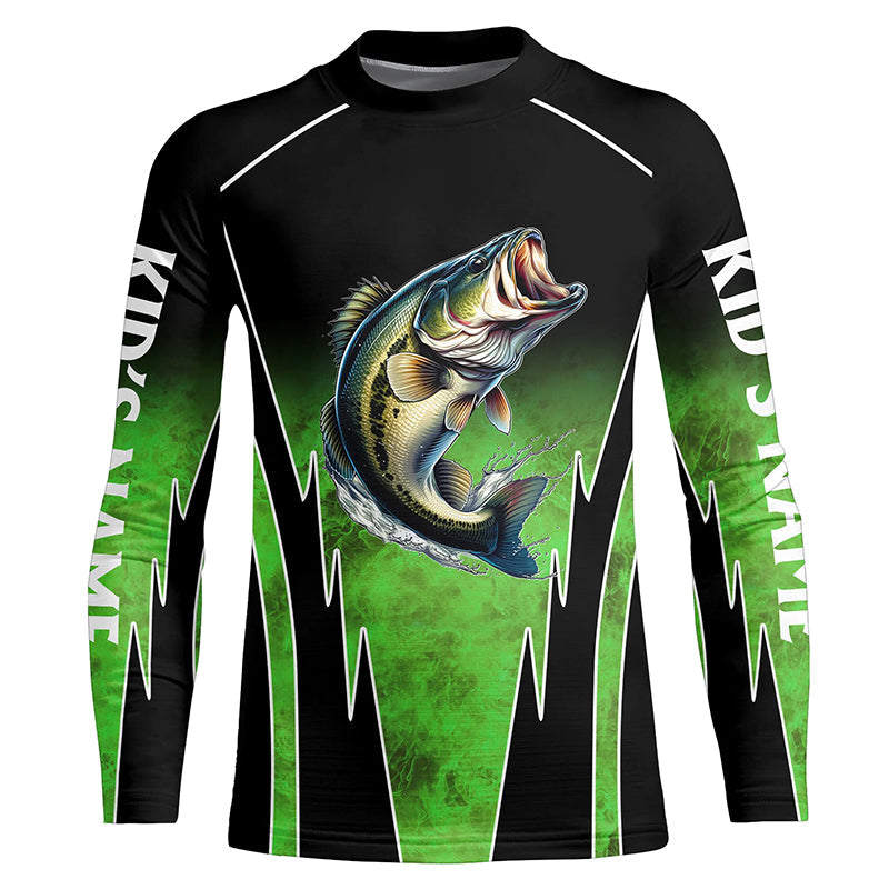 Largemouth Bass fishing green camo Custom performance long sleeve Bass fishing jerseys NQS7282