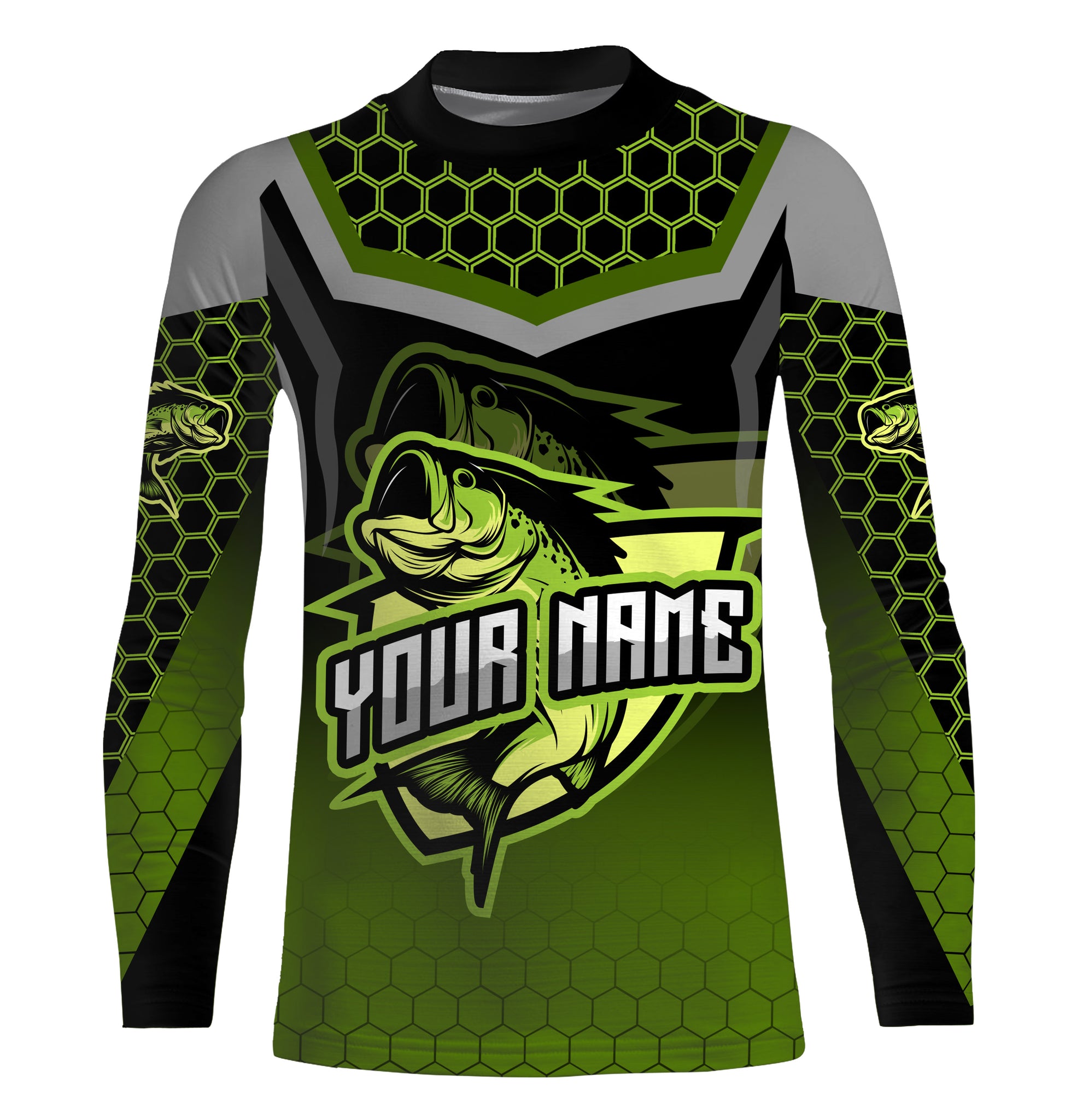 Largemouth bass fishing green Custom Name UV Protection Fishing Shirts, Bass fishing jerseys NQS3644