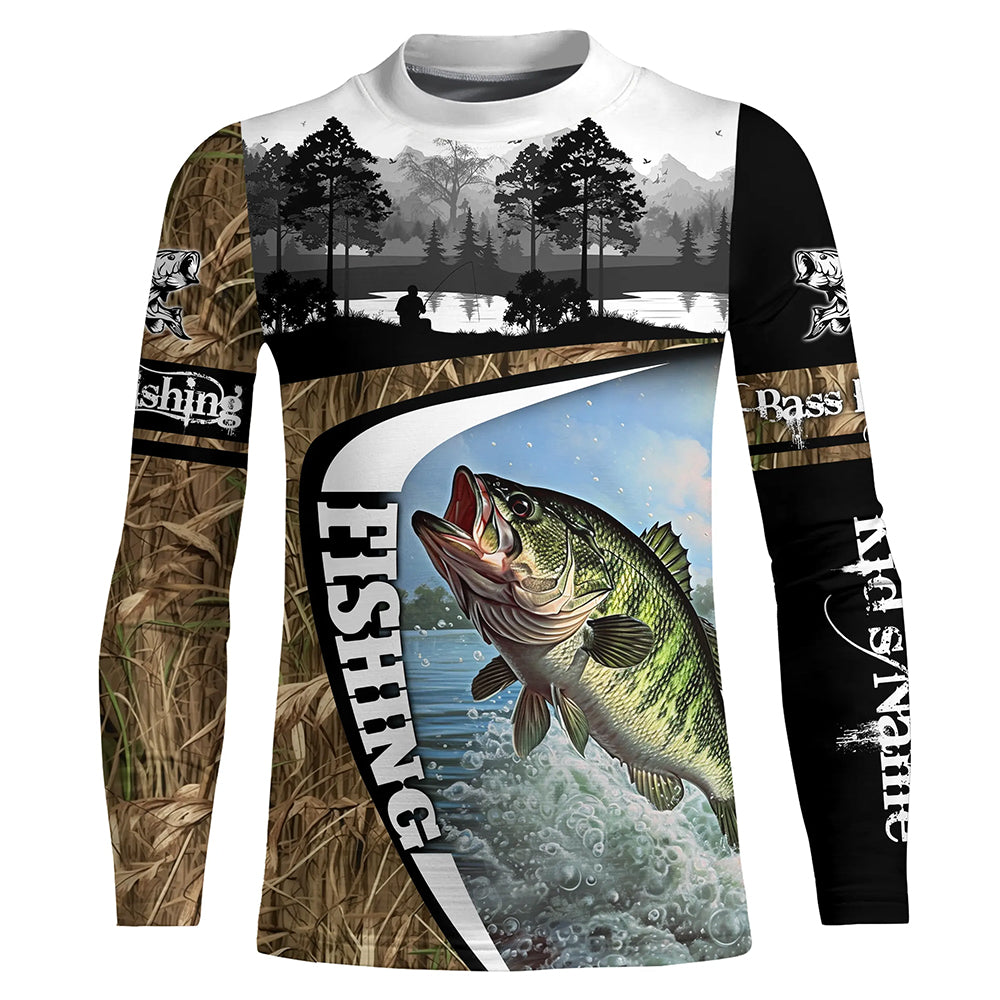 Largemouth bass fishing camo Custom UV protection long sleeves fishing shirt, fishing gifts NQS921