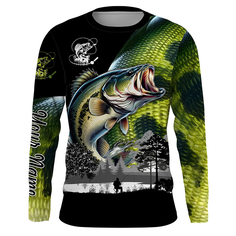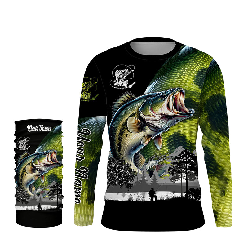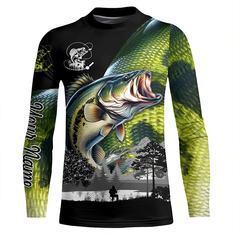 Largemouth Bass fishing scales green black Customize Name UV sun protection bass fishing shirts NQS1946