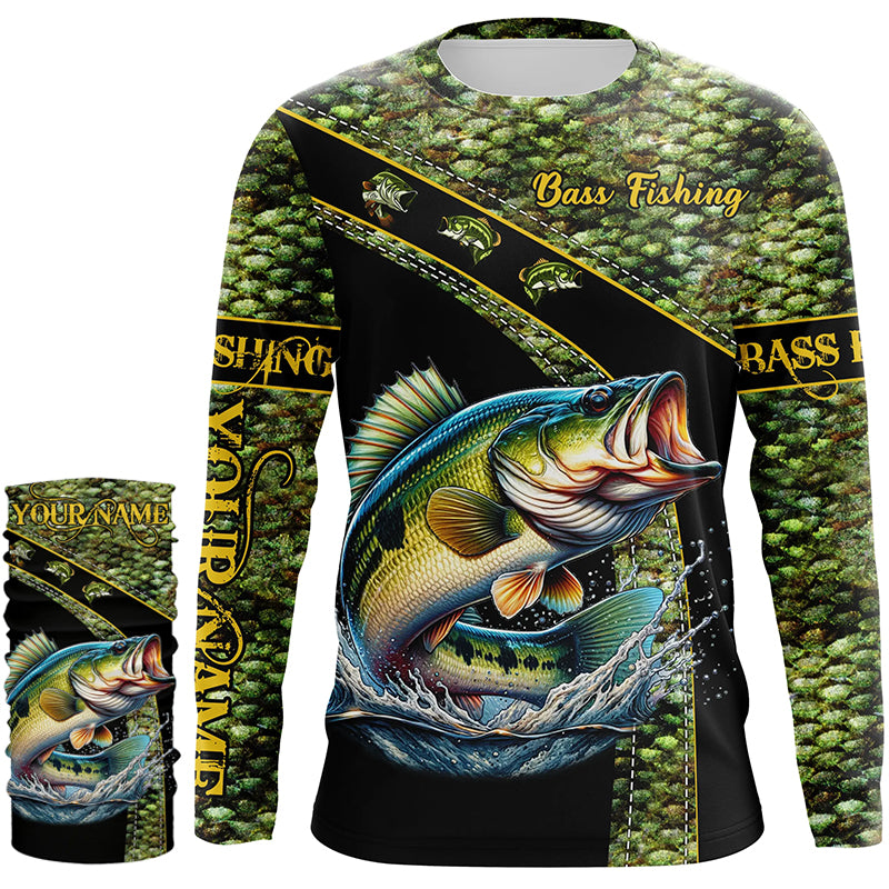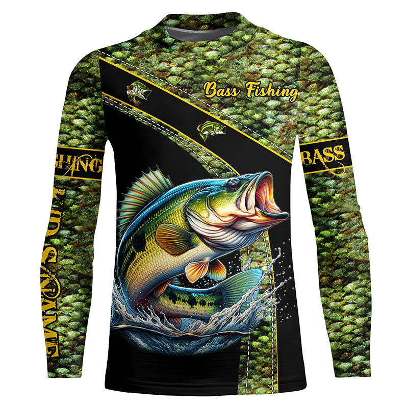 Largemouth Bass fishing scales UV protection Custom long sleeve fishing shirts, Bass fishing jerseys NQS4888