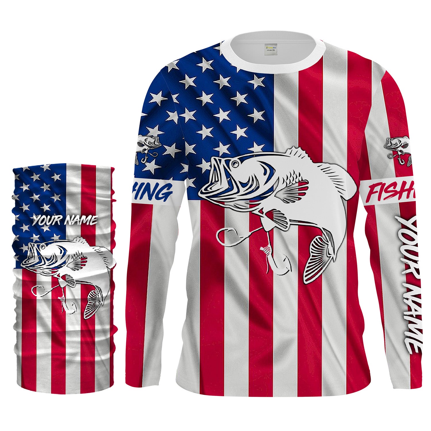 Largemouth Bass fishing American flag patriotic 4th July Customize long sleeves fishing shirt NQS1957