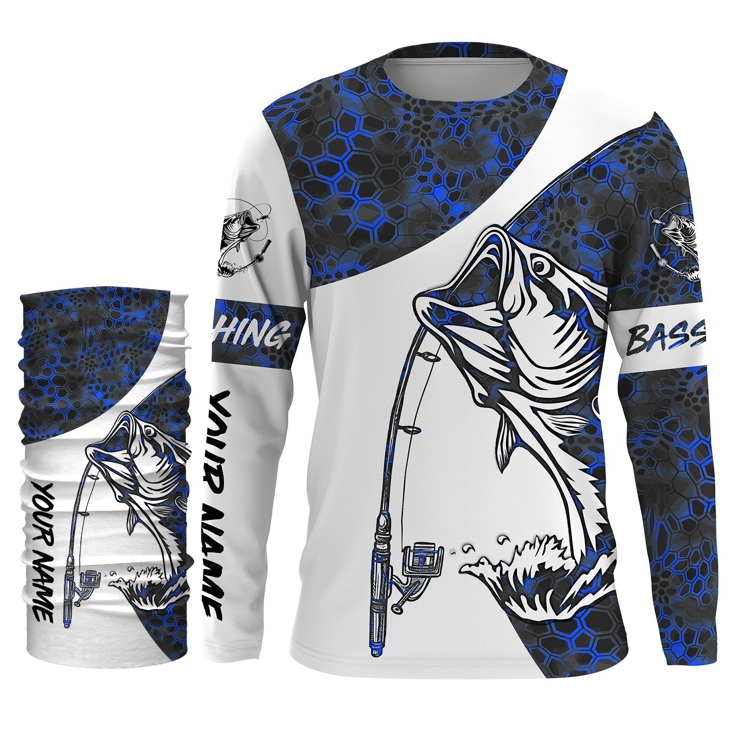Largemouth Bass Fishing tattoo blue camo Custom Name 3D All over Printed UV Protection Shirts - NQS2980