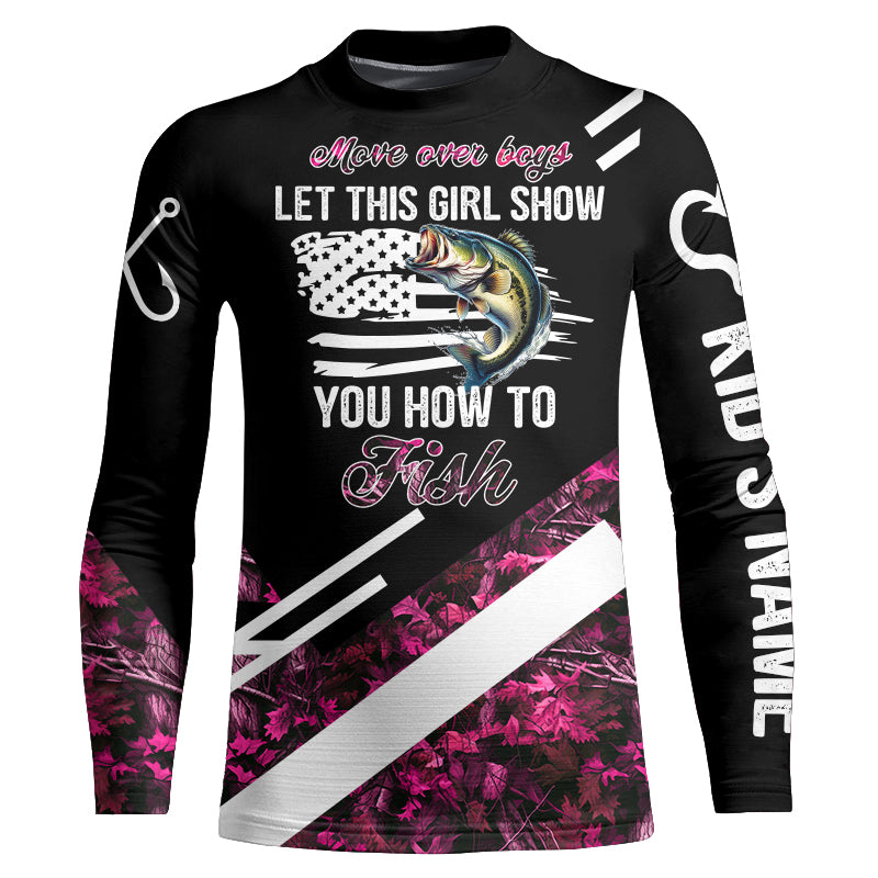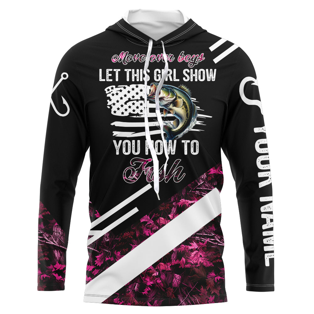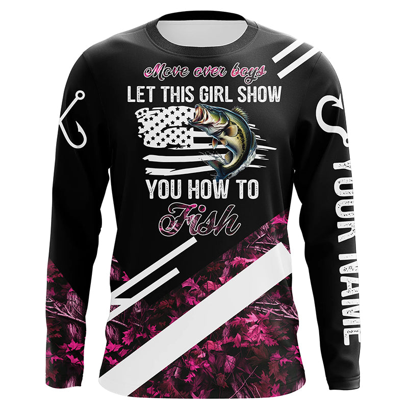Move over boys let this girl show you how to fish Bass fishing pink camo custom name fishing shirts NQS4294
