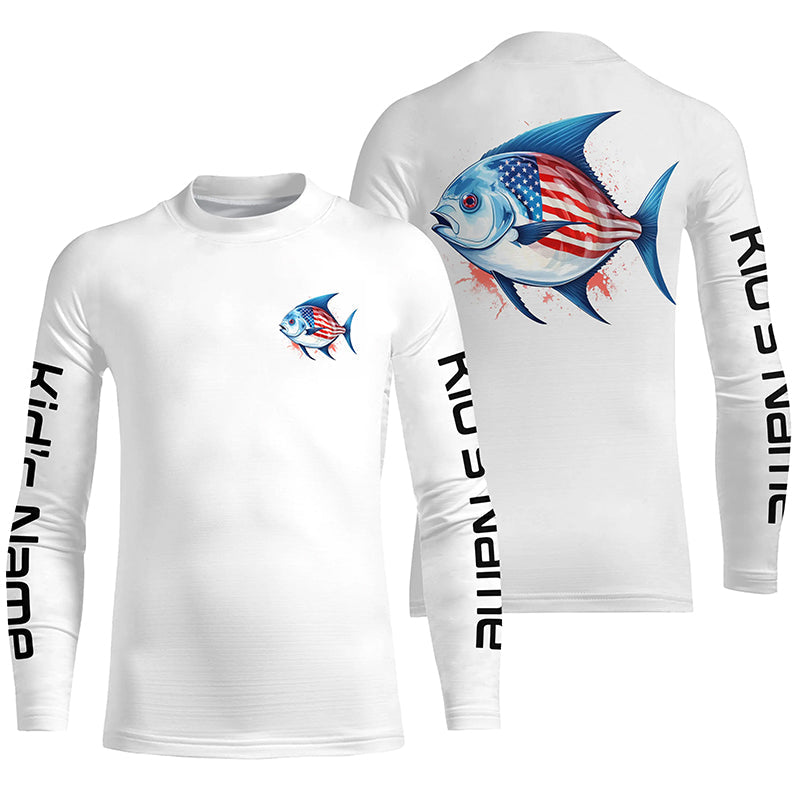Pompano Fishing American Flag Custom Long Sleeve Fishing Shirts, Patriotic Fishing Jerseys IPHW4784