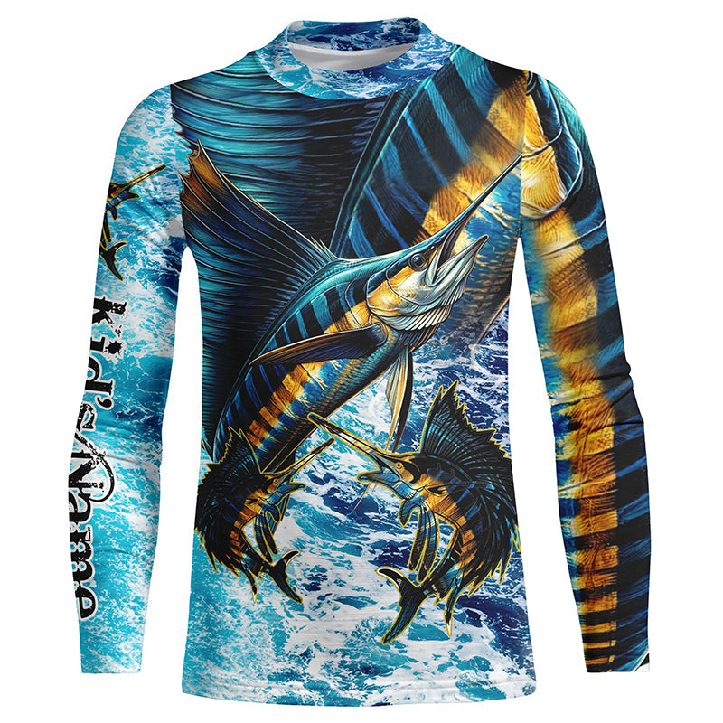 Sailfish fishing scales blue sea water camo Custom UV protection performance long sleeve fishing shirt NQS7097