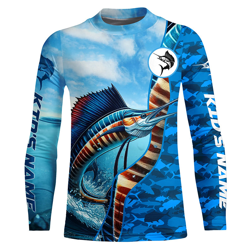 Sailfish saltwater fishing Custom sea blue camo UV Protection Fishing shirts, sailfish fishing Jerseys NQS5630
